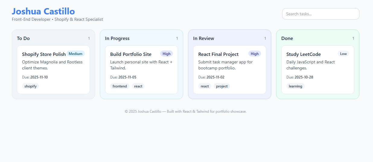 Hey, I'm Joshua, a front-end developer passionate about creating digital experiences that users love. Based in Mesa, AZ, I specialize in building modern web applications with React, focusing on clean code, responsive design, and great user experiences.